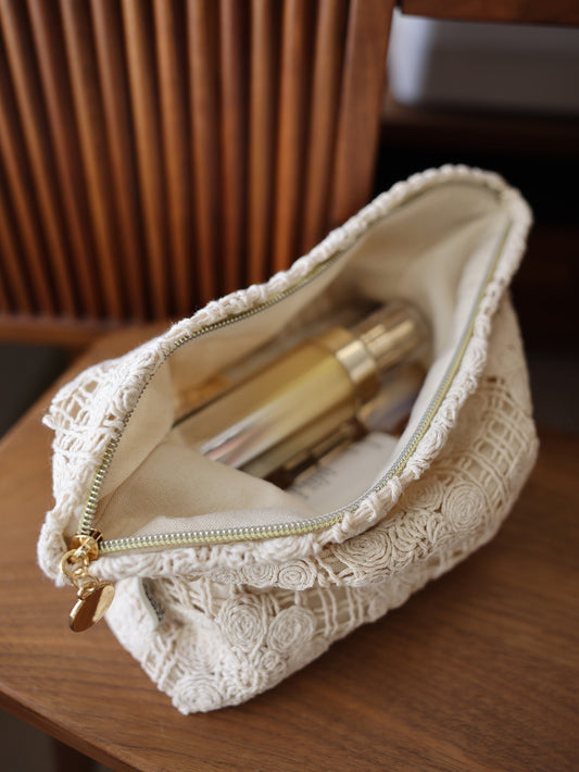 Ethnic style embroidered flowers solid color makeup bag versatile woven fashionable storage bag for girls clutch bag toilet bag
