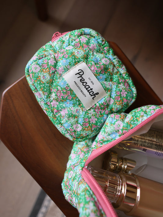 French Style Floral Artistic Fresh Green Flower Makeup Bag Ditty bag Micro floral zippers Small bag
