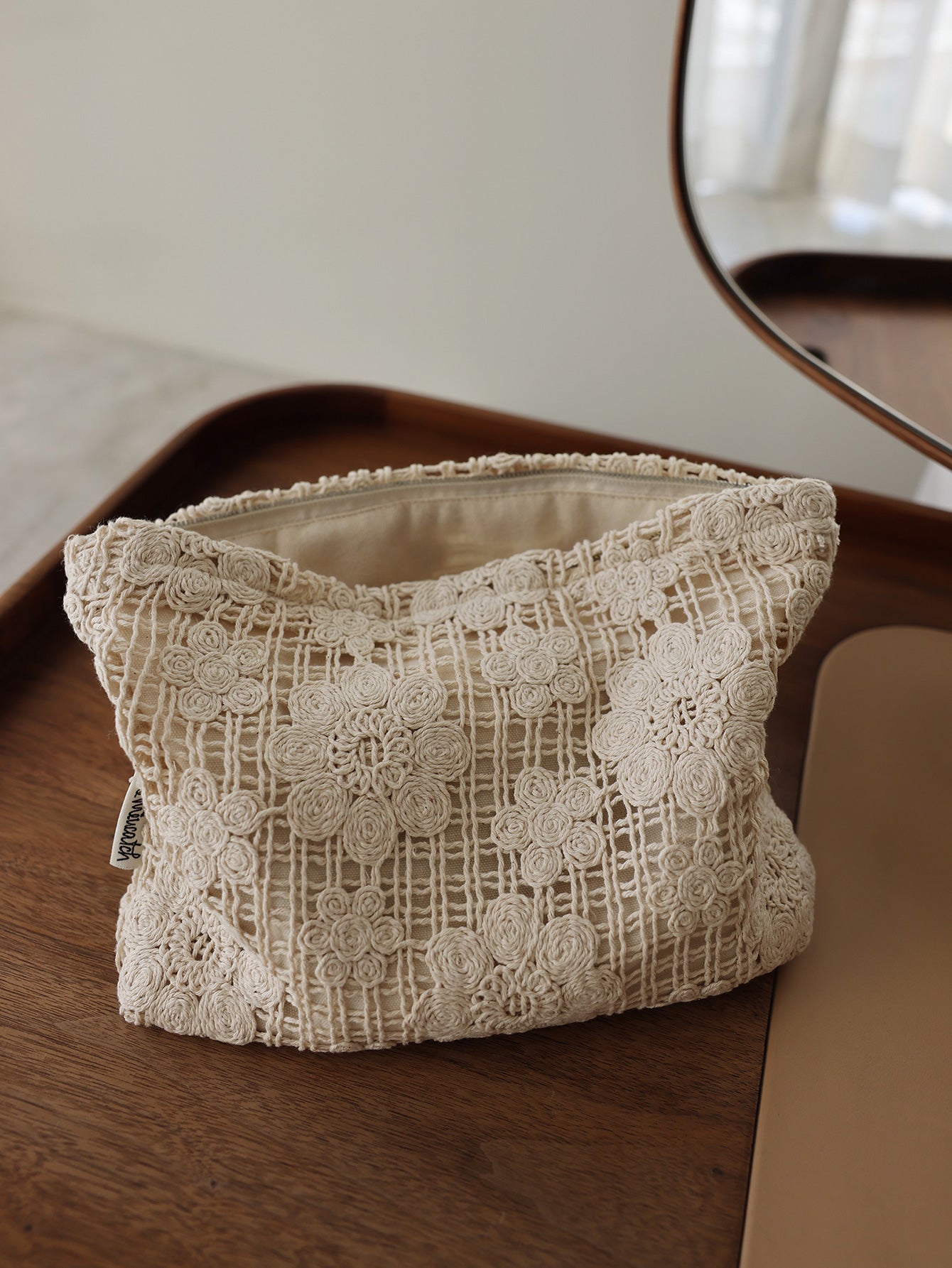 Ethnic style embroidered flowers solid color makeup bag versatile woven fashionable storage bag for girls clutch bag toilet bag