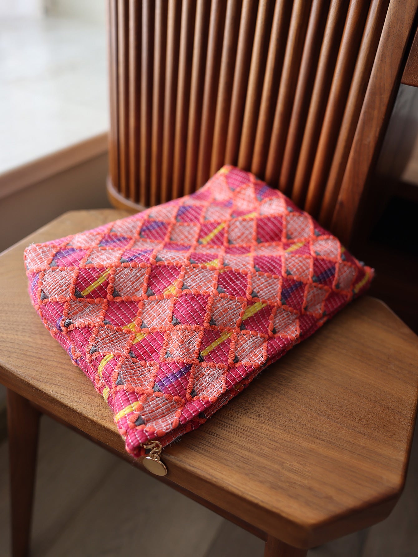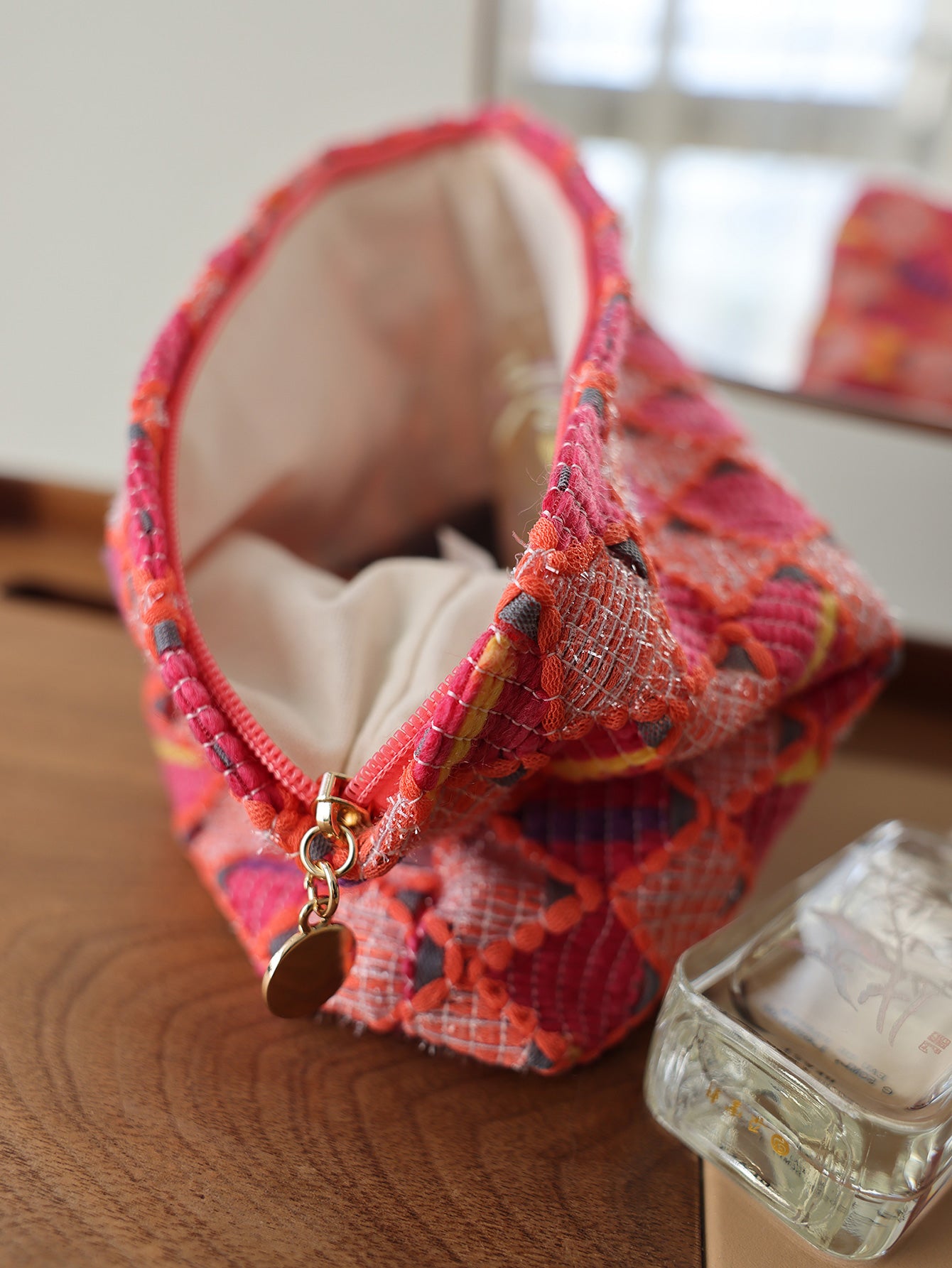 Precatch Red diamond lattice fashion large capacity zipper makeup bag New Year Christmas girl travel portable ethnic style storage bag toiletry bag