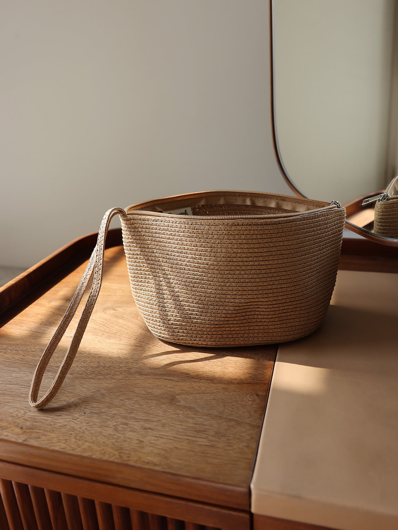 Precatch Straw woven bag spring and summer travel cargo bag solid color woven storage bag outdoor portable leisure beach bag handbag makeup bag